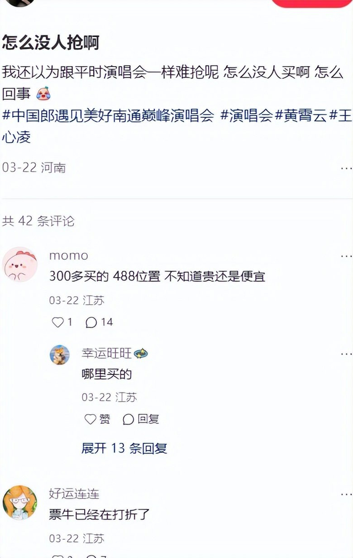 可网友毕竟是去听歌的,不是去看舞美的,她搬用别人吟唱这件事,也给了网友留下了极大的负面印象,后续开始面临票卖不出去打骨折的尴尬。
