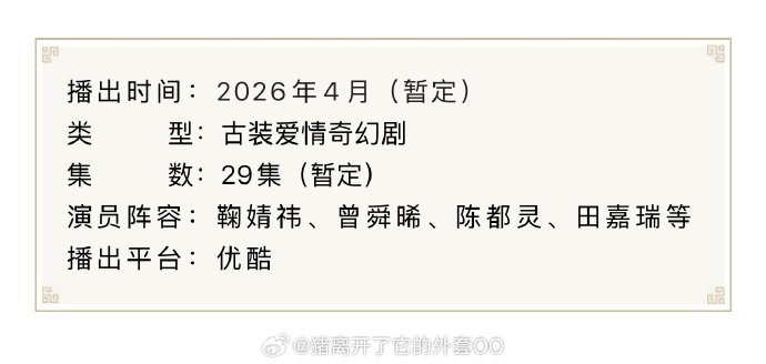目前,该剧在优酷平台的预约量已突破 196 万,话题单日阅读量超千万,显示出极高的市场关注度 。多数观众认可演员适配度与美学风格,呼吁早日见面 。但鉴于多次延期教训及官方未确认关键信息,理智的声音同样存在,网友普遍呼吁“非官宣不约”,建议以优酷正式公告为准 。若剧集顺利取得发行许可证并释出预告,4 月开播可能性较高,届时将与多部 S+ 级古装剧形成春季档竞争局面 。