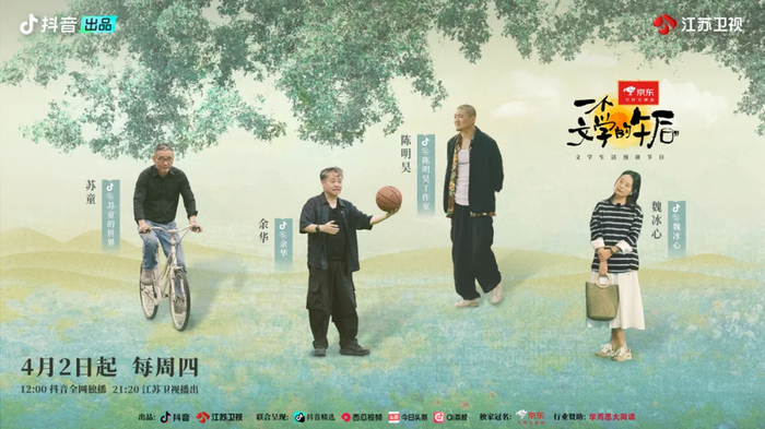 由抖音、江苏卫视联合出品的国内首档文学生活漫谈类节目《一个文学的午后》将从4月2日起,每周四12:00抖音全网独播,21:20江苏卫视播出。
