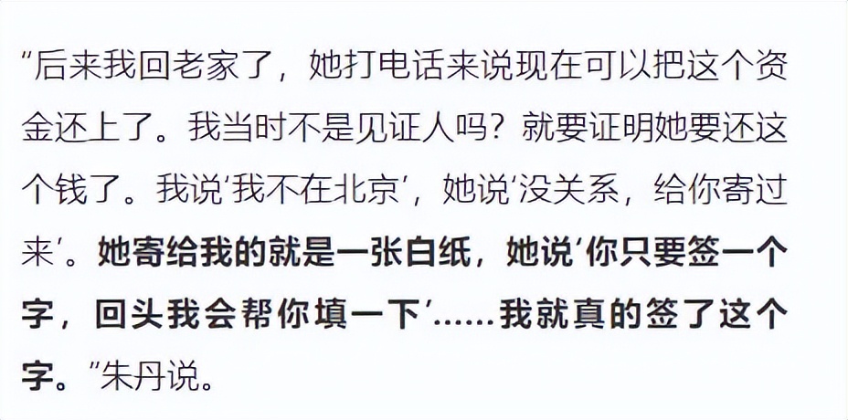 朱丹当时正忙于工作,出于对“闺蜜”多年信任的惯性,她连问都没多问一句,直接在空白纸上签下了自己的名字。