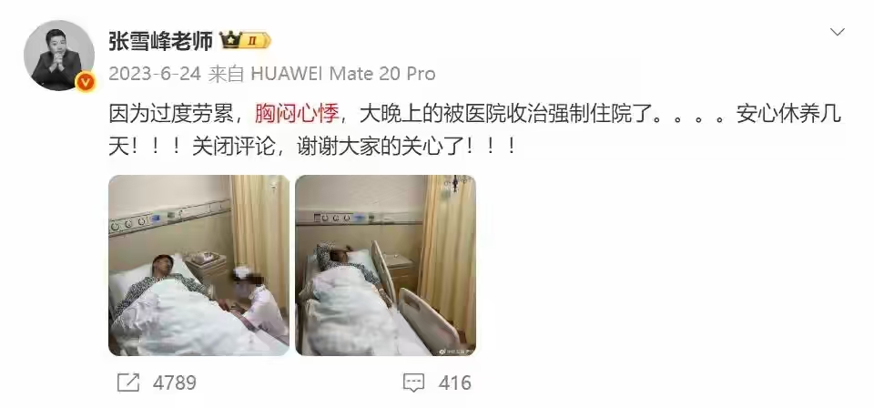 而且张雪峰的离世,早前也是有过预兆的,在2023年的时候。