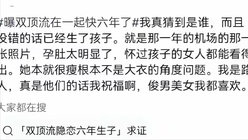 说是圈里有双顶流在一起快6年多了,如今更是连孩子都有了。