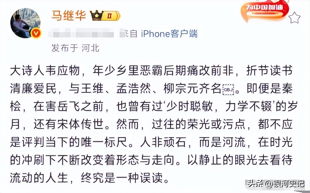 他虽未直接点名,但字里行间暗指“过往荣光不是评判当下的标尺”,更直言“秦桧也有少时聪敏”。