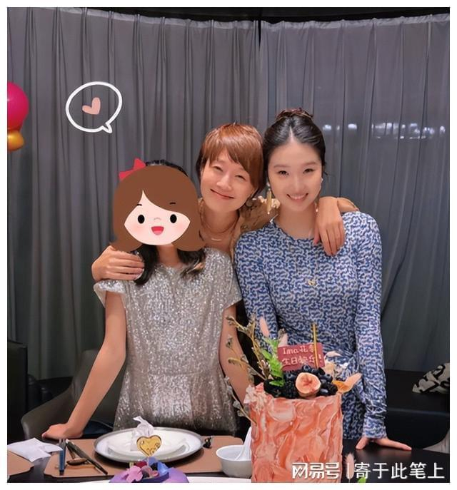 妈妈站在中间位置,双手搭在两个女儿的肩膀上,脸上洋溢出幸福的微笑,有这么优秀的女儿,这也是她最幸福的时刻吧。
