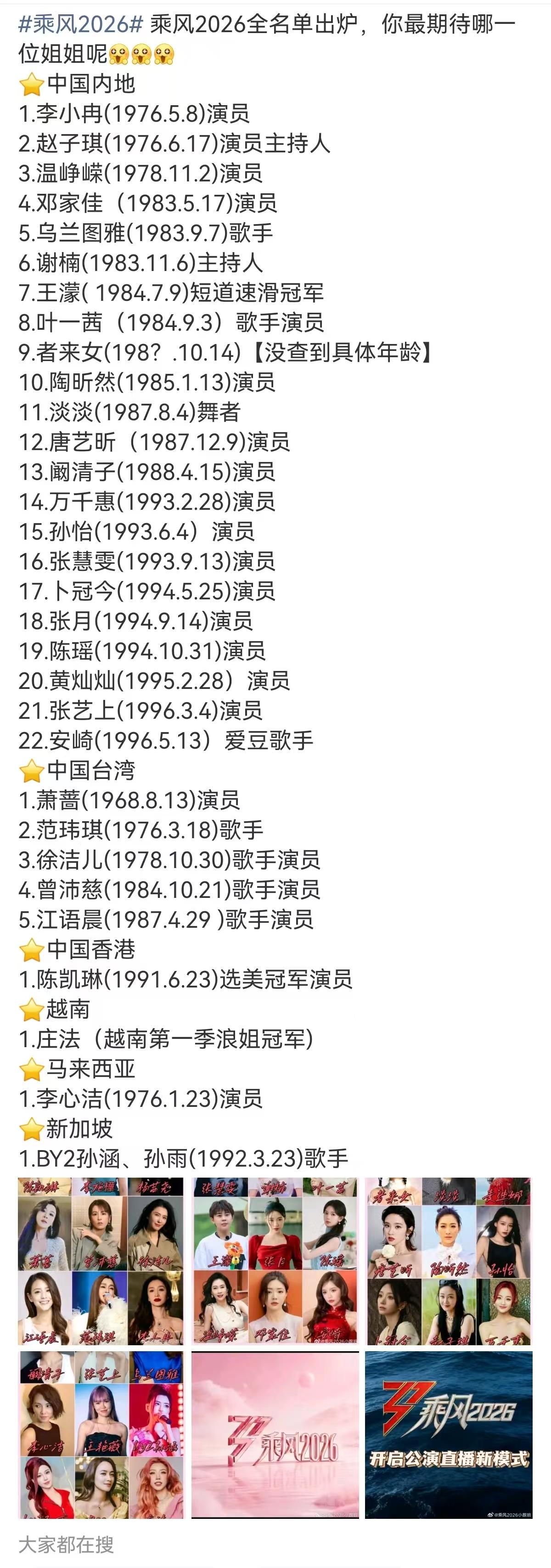 根据知情人士透露,4月初《乘风2026》将录制初舞台,每季节目即将播出前,网传的名单可信度最高,而在这份名单中,可以看到多位自带热度的姐姐。