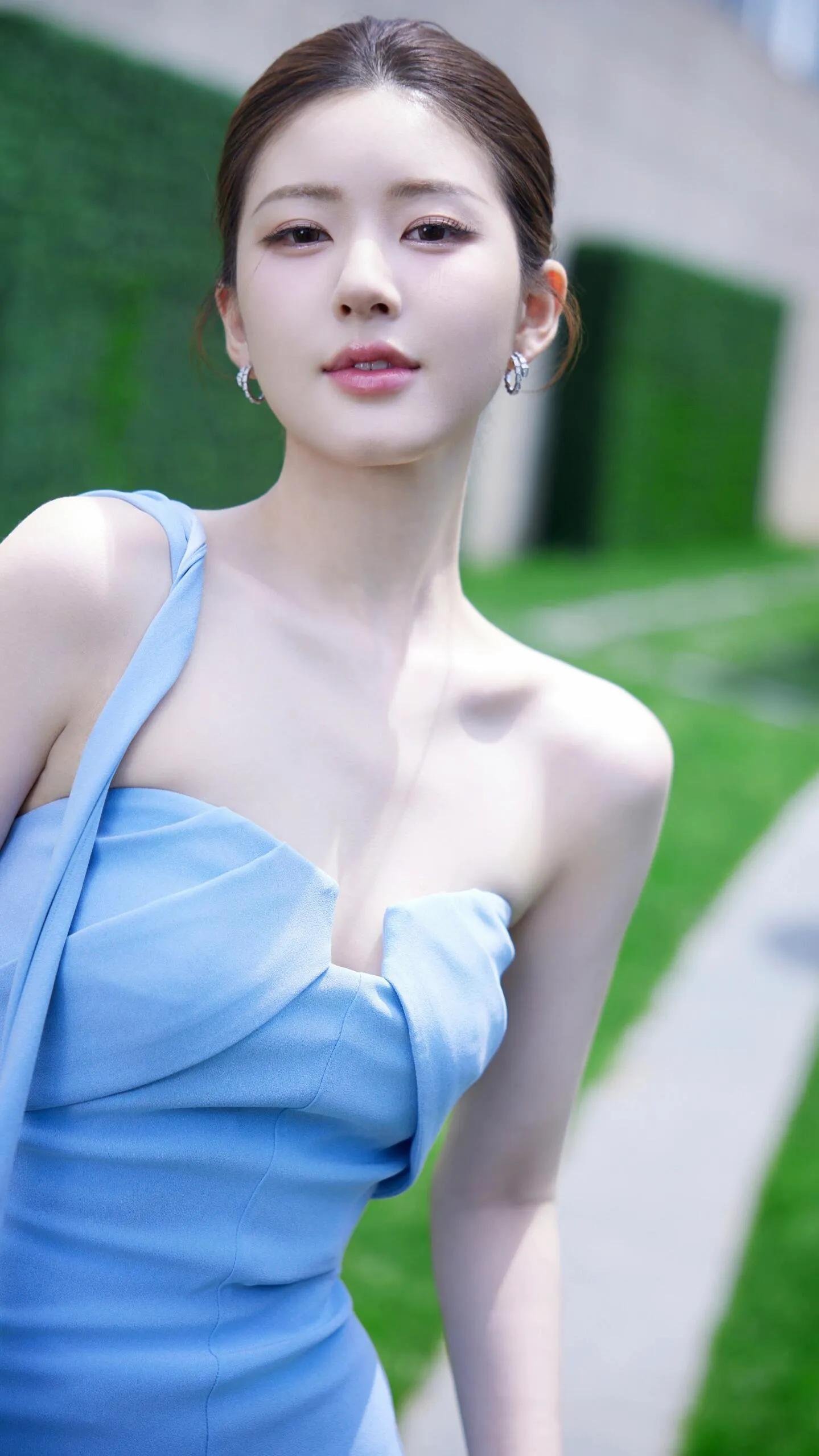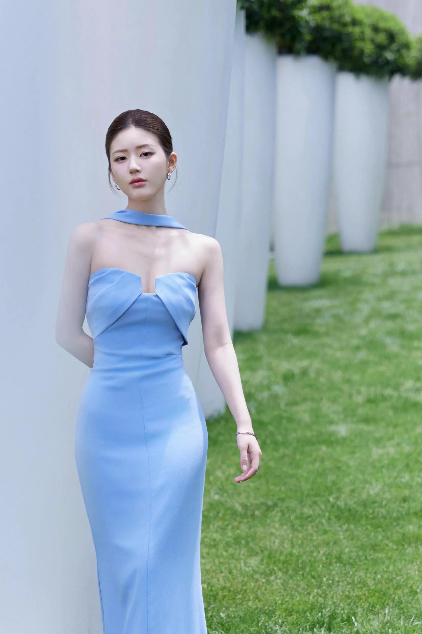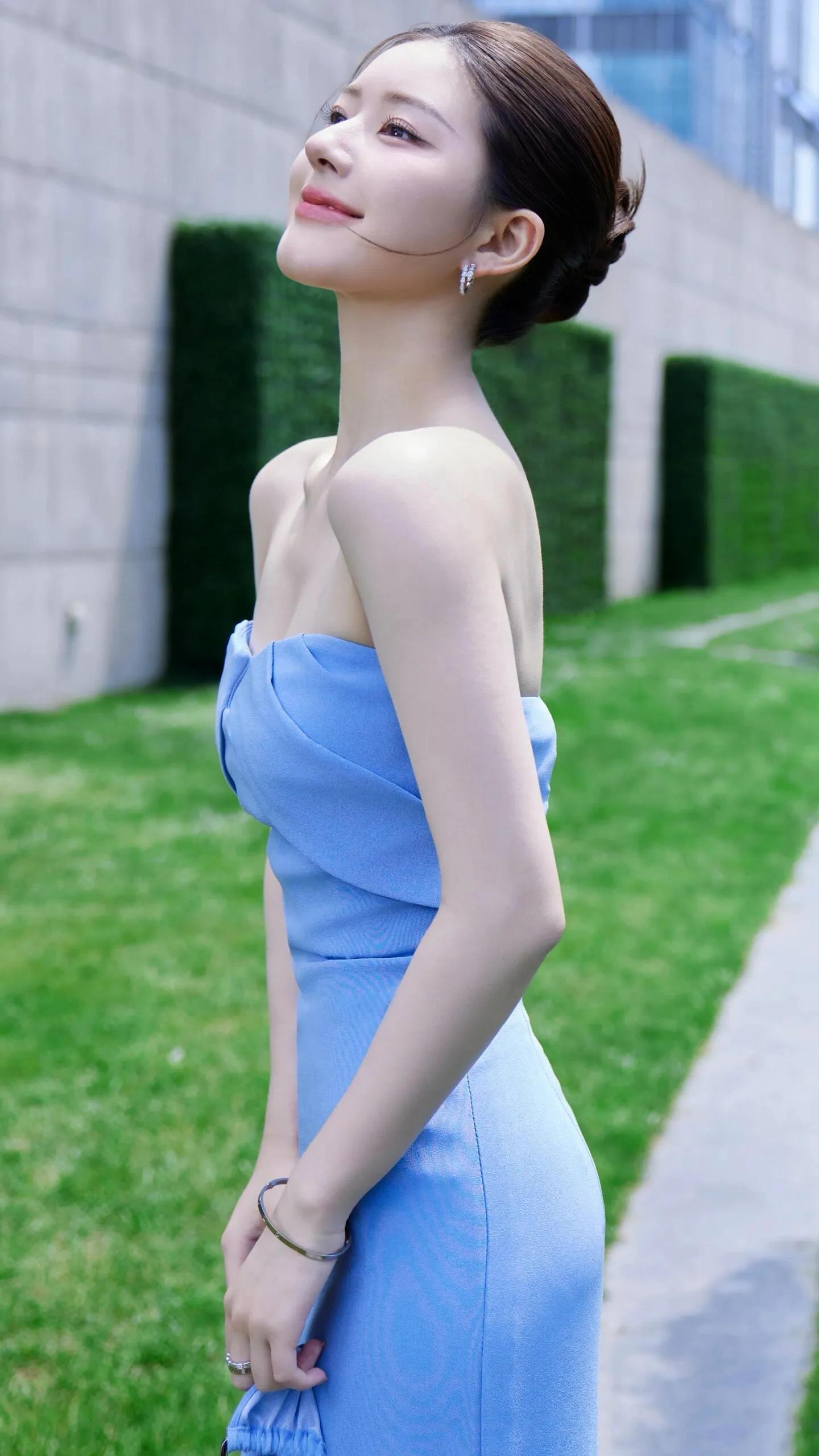 赵露思一袭天蓝色裹胸露肩长裙搭配盘发,肌肤白皙透亮,身姿婀娜秀丽,纤细小蛮腰诱惑力十足,甜美笑容幽雅迷人!