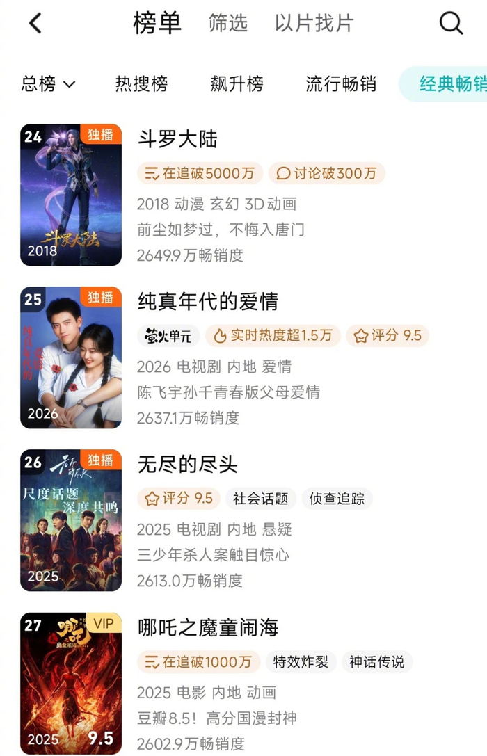 陈飞宇 纯真年代的爱情上升腾讯拉新年榜25位