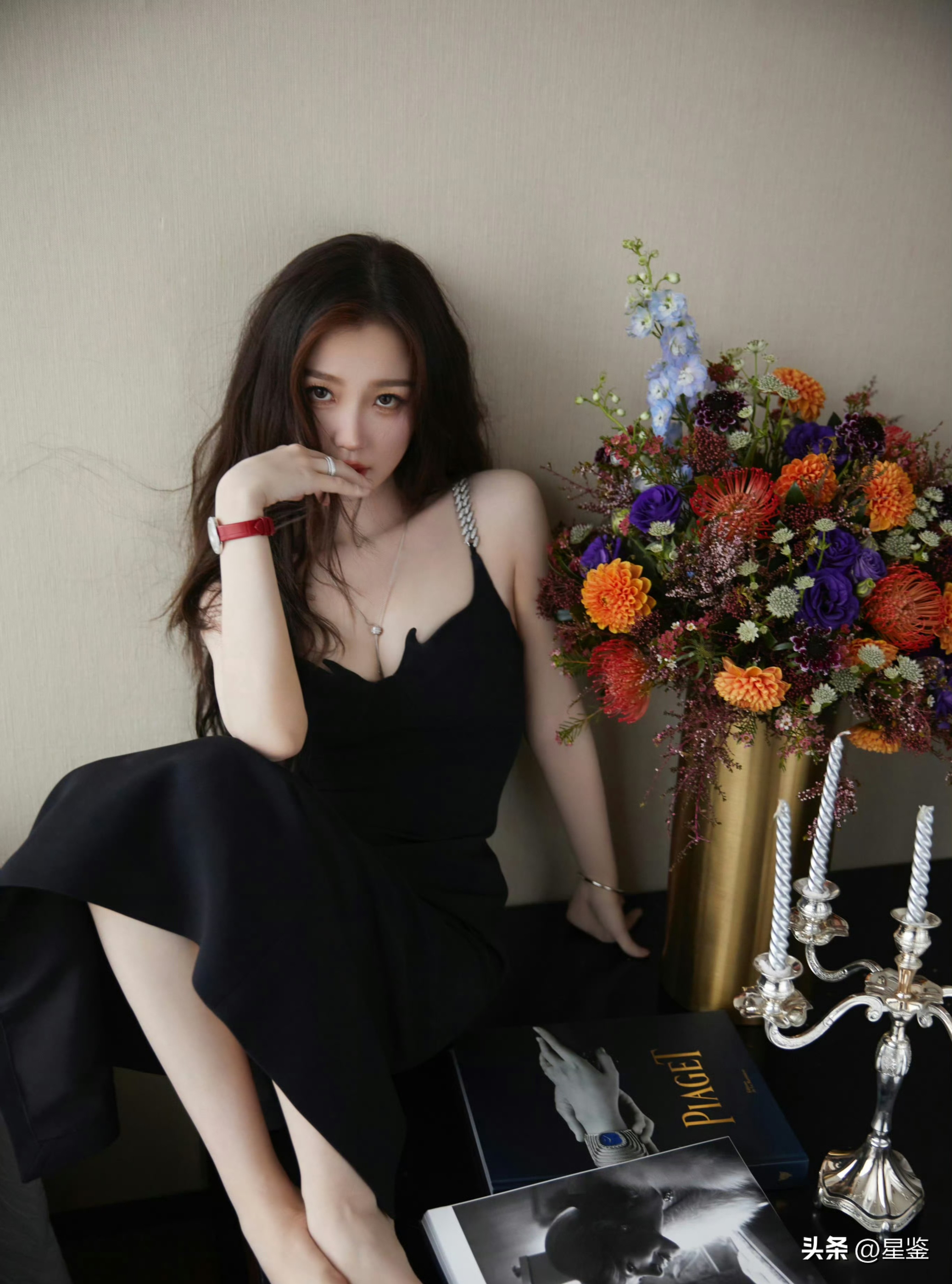 她搭配的红色表带手表和细款银饰,用小面积亮色打破了全黑的沉闷,既呼应了整体的精致感,又不会抢了裙子的风头。不管是约会还是参加小派对,这种“简约不简单”的思路都特别实用,普通人也能轻松抄作业,穿出属于自己的优雅气场。