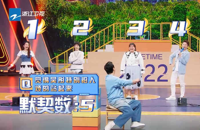 但只站来了三个人,与正确答案擦肩而过,第二次抽到的是5,在王濛的帮助下,沈腾怪招频出,给出的问题是觉得导演吴彤特别招人烦的站起来,果不其然,五个人都深有同感,不知道此时此刻,吴彤的心理阴影面积有多大