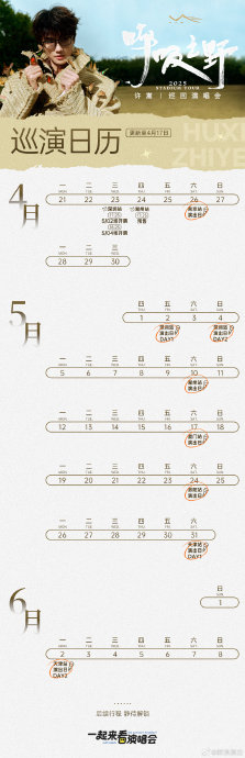 许嵩的"呼吸之野"巡回演唱会自2025年3月启航,已官宣长沙、南京、深圳、湖州、厦门、洛阳、天津等站,其中天津为北方唯一双场(5月31日、6月2日),创下"五月全勤"纪录。2026年3月,巡演仍在延续,最新动态显示洛阳站刚刚收官。演出以"城市陆续抵达"为线索,每站结合地域文化定制舞美,如长沙场融入湘江水影,南京场呼应古典园林。