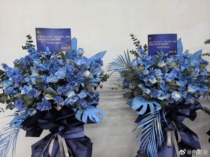 #张杰[超话]##好多明星给张杰演唱会送花篮#满场花篮皆是心意,应援色统一又好看,预祝演唱会圆满成功。