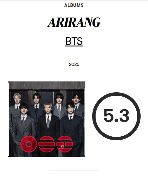 专辑一面承受专业质疑——Pitchfork批评部分曲目"陷于西方说唱框架",一面创下商业奇迹:首周Billboard专辑榜64.1万销量刷新十年男团纪录,黑胶版20.8万张销量改写尼尔森历史。这种分裂恰印证BTS在文化符号与流行载体间的探索:传统元素如《阿里郎》采样被肯定为"文化输出范本"(《Rolling Stone UK》),而套路化制作则暴露工业流水线压力。