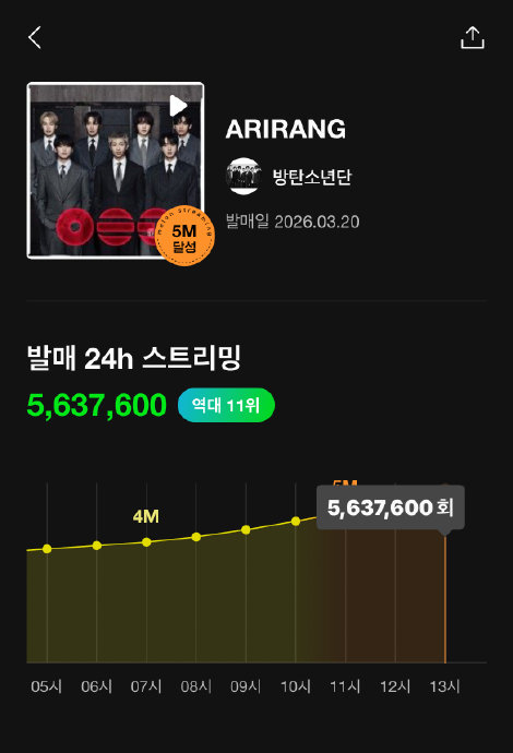 主打曲 《SWIM》 以Alternative Pop为骨架,讲述逆流而上的生存勇气。RM参与创作的英文歌词"我愿以一生注视你"成为粉丝集体签名,MV发布8分钟播放量破200万,创2026年双项纪录。歌曲空降Melon双榜冠军,11国iTunes登顶,Billboard乐评称其"用温柔力量重定义K-pop英雄叙事"。