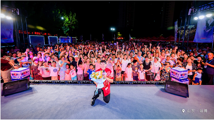 在山东·淄博,土生土长的农民歌手“大衣哥”朱之文亲临现场,为这场“家门口”的音乐盛宴助阵,以其独特的嗓音先后献唱了《滚滚长江东逝水》、《谁不说俺家乡好》和《新时代的新农民》三首代表作,为父老乡亲高品质的文娱生活“增光添彩”。演唱期间,现场观众纷纷拿出手机记录下这难得的精彩时刻。“大衣哥”的到来,无疑为本场活动注入了更多星光,实现氛围与话题度的“双丰收”。