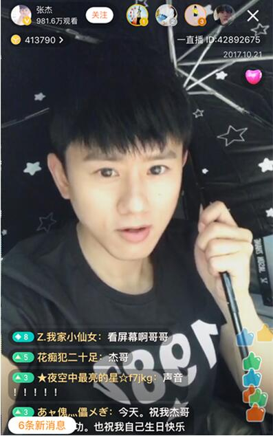签名结束后,杰哥也想活动活动为晚上的演唱会预热。于是,杰哥走到了场馆门口,和提前到来的歌迷们先打了个招呼。“星星们”看到杰哥后,尖叫声此起彼伏,评论区的粉丝直呼“这波音浪也太强了!”再次回到后台,杰哥静静地坐在电脑前与歌迷分享了之前演唱会留下的照片,他一边给歌迷们介绍着每张照片的背景和内容,一边自恋地感慨道:“我怎么这么帅呀!”突然,杰哥的身后出现了一把伞。看到那把伞之后,杰哥还自黑道:“我怎么像个推销员一样。”随后,杰哥还真的打着伞做起了直播,因为在他看来,这是有另一层寓意,“这个伞上有很多的星星,我这样打着伞,就好像我们在同一片星空下一样。”