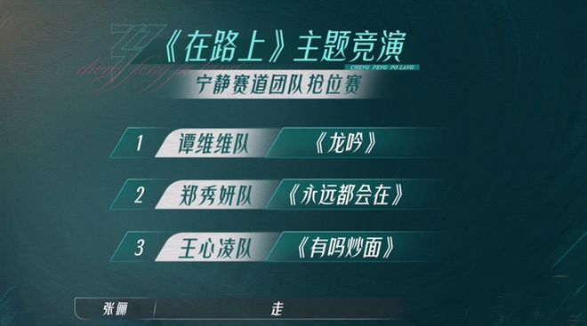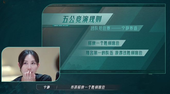 《浪姐3》五公分为团队抢位赛和团队围攻赛,宁静赛道为团队抢位赛,此赛道释放一个胜利席位,排名第一的队伍获得该胜利席位。在这个赛道中,谭维维队和王心凌队都是6人全部出战,而郑秀妍队派出于文文、王紫璇和张歆艺3位姐姐应战,这也让整个比赛充满了悬念。