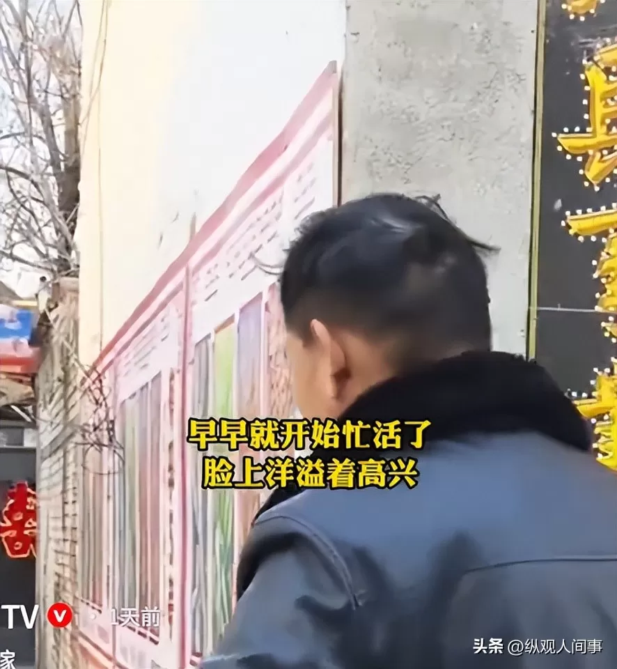 他全程忙前忙后张罗婚礼,亲自贴喜字、端盘递碗,只为给女儿的婚礼添点喜气。