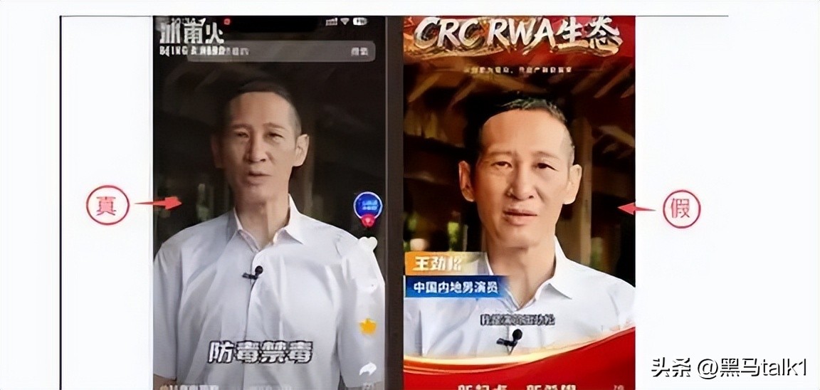 和霍启刚同步踩雷的,是内地低调实力派王劲松。2月底,王老师宅家远离喧嚣,却忽然发现社交网络乱象:有人用AI技术换脸,把他以往公益视频改编成理财诈骗广告。
