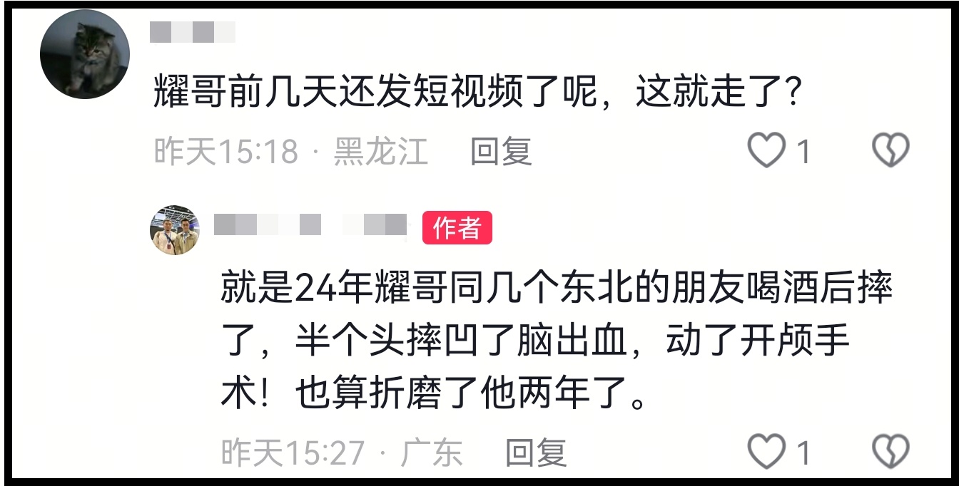 其中一位好友在与网友互动时提到2024年,李道瑜和几位东北朋友聚会喝酒,回家后醉酒摔倒,半个头凹了脑出血,做了开颅手术。
