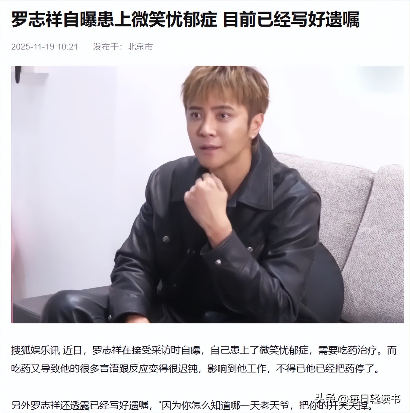 搜狐娱乐(罗志祥自曝患上微笑忧郁症 目前已经写好遗嘱 2025.11.19)