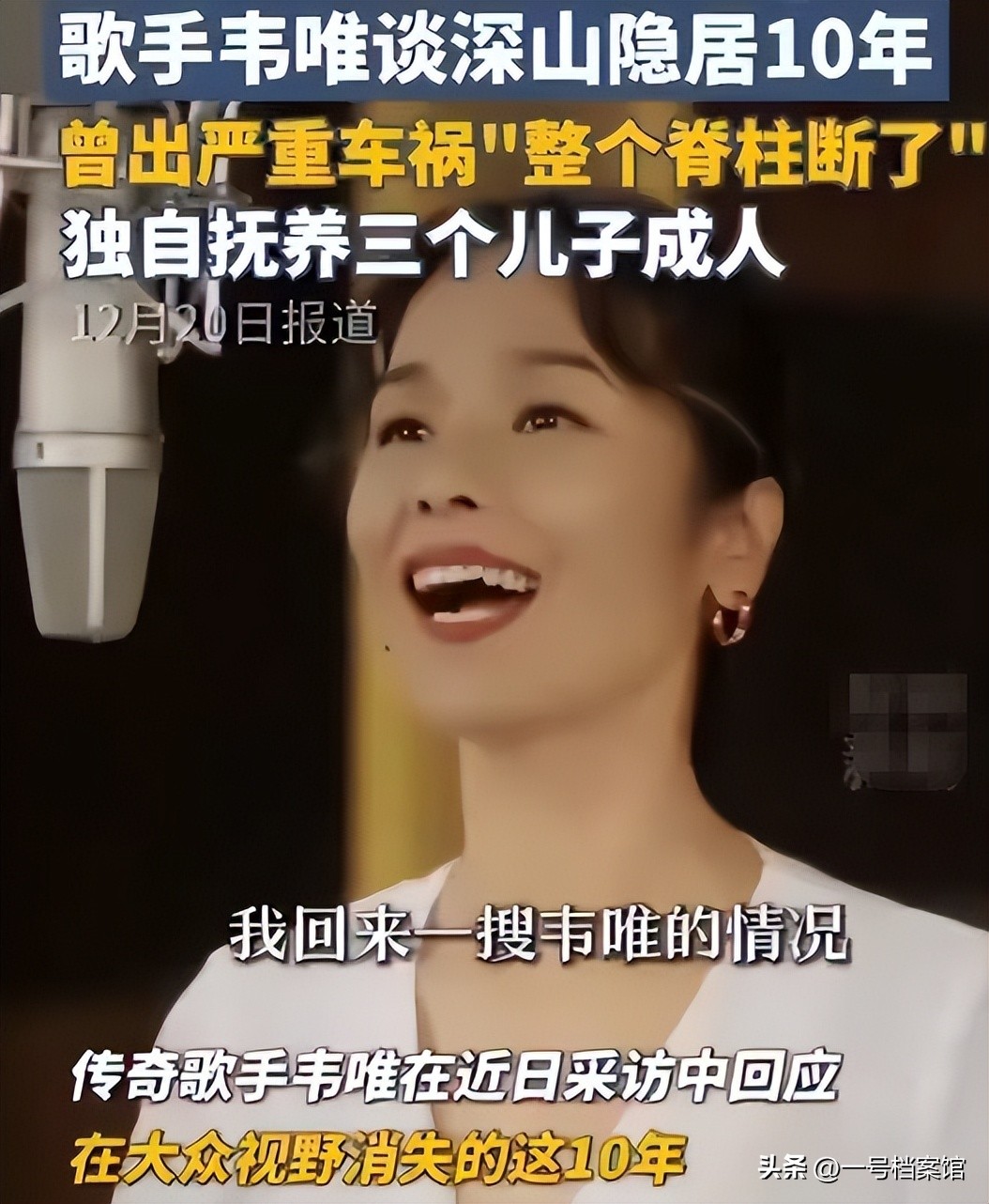 韦唯深山隐居10年真实原因:准备下山时遭遇车祸脊柱折断.搜狐娱乐.2024-12-21