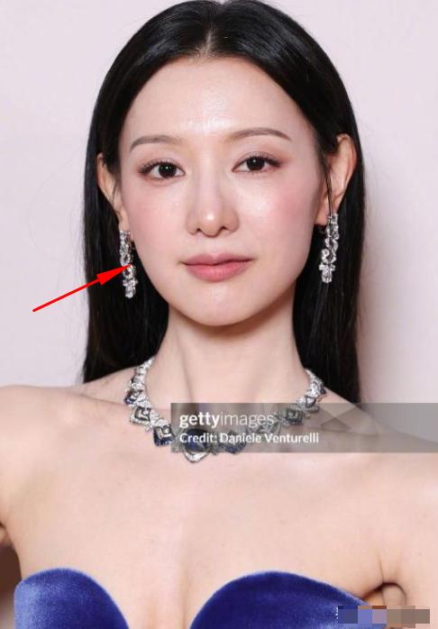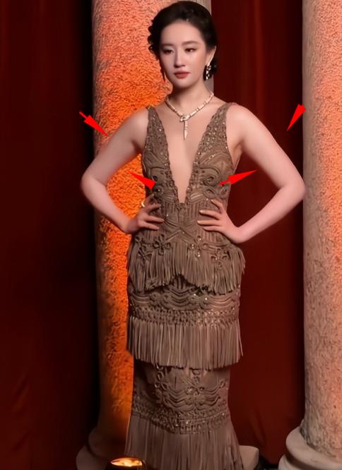 反观刘亦菲,她穿深V,是为了更好地展现礼服与珠宝的质感。