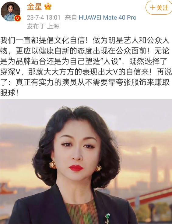 金星直言:“既然选择了穿深V,那就大大方方的,又想穿得性感吸睛,又要拿手捂着,那你别穿啊!”