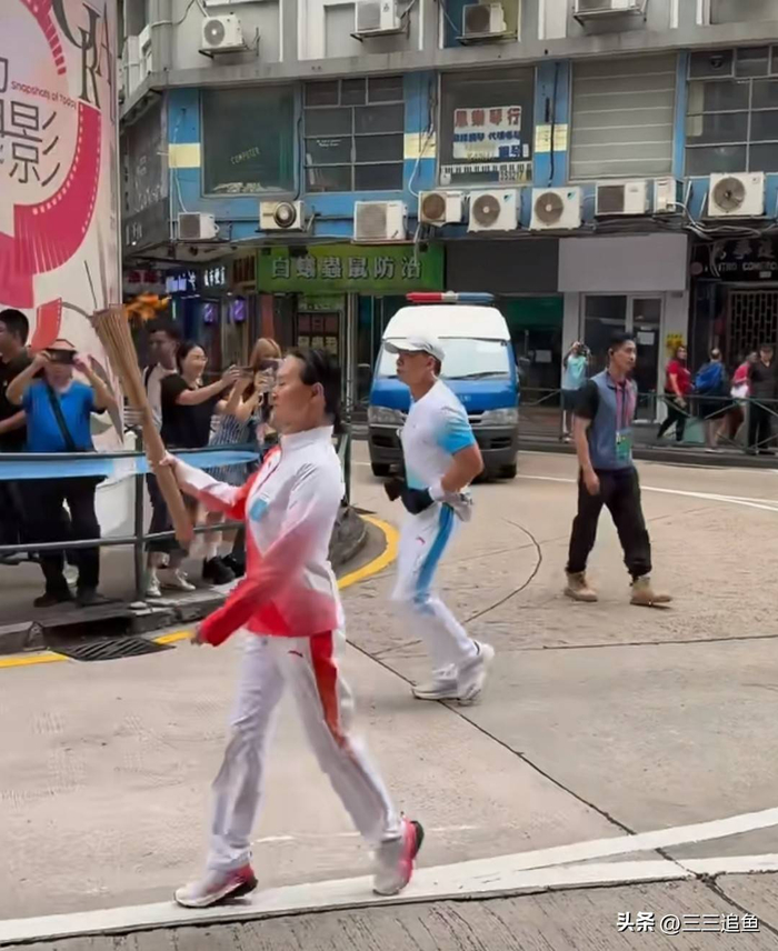 传递过程中,何超琼一手持火炬,轻快地向前慢跑,姿态始终优雅而从容,动作十分轻盈。