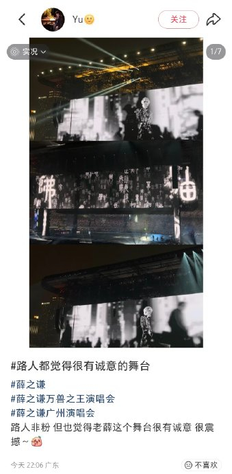 ## 虚实之间:薛之谦演唱会打破观演界限的沉浸式互动,在广州的体育场,薛之谦的"万兽之王"巡回演唱会以一场前所未有的科技与艺术结合表演,彻底重构了观众与舞台的互动关系,他的创新不仅仅在于舞台的宏大规模,更在于他将科技与艺术融合,创造出一种前所未有的沉浸式观演体验。,薛之谦的舞台工程堪称科技与艺术的完美结合,这个全球最大的四面台架构,不仅打破了物理边界,更创造了一个360度的无死角观演体验,舞台中央的升降翻转LED矩阵与环形冰屏屏幕的配合,确保了每一个观众都能近距离捕捉表演者的每一个细微表情,这种设计彻底消解了传统三面台的视线盲区,让观众在每一个角落都能感受到表演者的真实存在。,在动态交通工具矩阵中,薛之谦打造了一个充满未来感的移动装置系统,高速传送带的"传送带奔跑",让他在舞台边缘疾驰,与四面观众实现了"贴脸互动";钢琴车巡游的创新设计,虽然首场因机械故障仅完成单面演出,但后续通过旋转设计优化,为观众带来了前所未有的近距离聆听体验;而吊威亚的20米高空飞行,则让观众从飞鸟视角俯瞰全场,创造出震撼性的视觉冲击。,AI仿生机器人的引入,则为表演注入了强烈的科技感与哲思。《骆驼》表演中,薛之谦与一个1:1还原的AI仿生机器人同台演出,不仅复刻了他的外形与动作,更通过动态捕捉技术同步歌声与口型,当机器人披风滑落露出机械骨骼与发光心脏时,观众在震撼中思考着人工智能的伦理边界,这种设计巧妙地呼应了歌词中的"真实与虚幻"哲思,让观众在科技与人性的碰撞中感受到深深的共鸣。,故障即兴的互动彩蛋则进一步展现了演唱会的独特魅力,首演时机器人出现故障,薛之谦当场调侃"科技也有脾气",并临时增加清唱段落补偿观众,团队连夜调试至凌晨四点,次日完美呈现,这种敬业态度本身就成为了一场隐藏的互动剧情,拉近了艺术家与观众之间的情感距离。,舞台的感官工程更是将观众纳入了一个充满情感共鸣的环境中,L-1顶级音响系统的应用,确保了全场的声场均匀分布,即使看台角落的观众也能清晰地感受到气息的转换,穹顶的光瀑与草丛中的机械动物模型的跳动,营造出一种被舞台"拥抱"的沉浸感,让观众仿佛置身于一场充满生命力的自然森林之中。,即兴互动的人格化表达更是让观众感受到薛之谦的真诚与幽默。"退票"梗的仪式化、方言点歌盲盒以及结束时的奔跑跪谢,都成为了观众与演唱会之间独特的情感纽带,这些细节设计不仅拉近了距离,更让每一场演出都充满了独特的温度与人性光辉。,主题互动的升华则将演唱会提升到了一个更高的层面,从"人机共生"的命题,到生态关怀的仪式,再到不完美的真诚互动,薛之谦用各种方式引导观众思考科技与人性的关系,终场呼吁"保持善良敬畏万物,才不会被AI取代",观众用手机灯海响应"世界和平"口号,灯光与声浪交织成一场集体情绪风暴,令人动容。,这场演唱会的创新绝非技术堆砌,而是以"舞台即桥梁"的理念重构了观演关系,从机器人引发的哲思震颤,到威亚绳索上的汗水;从93米舞台的工程奇迹,到一句方言引发的笑声——每一个细节都在诉说着科技与艺术的深度融合,薛之谦证明,科技的最高价值,在于让人更真切地触摸到表演者的温度与真诚,当观众在560平方米的LED星海中合唱时,舞台已不仅是表演空间,而成为数万人共享情感的共鸣腔。,这场演唱会不仅是一场视觉与听觉的盛宴,更是一场科技与艺术的深度对话,是人性与机器和谐共生的先锋尝试,观众不再是被动的旁观者,而是成为了表演与科技互动的一部分,这种平等的情感传递,让演唱会超越了简单的娱乐表演,成为了一场关于人类命运的公共艺术。## 《万兽之王巡回演唱会》:薛之谦的沉浸式狂欢与科技狂欢,在广州的天气里,温度高到了要蒸发掉所有的常识。《万兽之王》巡回演唱会的舞台,像一座巨大的方舟,在这座城市的天际线上轻盈地漂浮,薛之谦站在这座舞台的最顶端,像一只化身为“诗人”的疯子,他用科技的力量,重新定义了演唱会的边界。,这场演唱会的舞台堪称为人类工程学的狂欢盛宴,薛之谦打造了一个全球最大四面台架构,宽93米(相当于8辆公交车首尾相连)、高36米(约12层楼)、占地500平方米的巨型舞台,这个舞台不仅仅是一个观演的场所,更像是一个立体的迷宫,让每一个观众都能在舞台的不同高度和角度中感受表演的震撼。,在这场狂欢中,科技与艺术的界限被彻底打破,薛之谦引入了AI仿生机器人作为演唱会的“共舞者”,这些机器人不仅能复刻人类的动作和表情,更能通过动态捕捉技术,实时捕捉表演者的歌声和口型,它们在舞台上穿梭,像一群被赋予了生命的机械精灵。《骆驼》这个表演中,薛之谦和他的机器人舞伴完美配合,演绎了一场“人机共生的”哲学寓言。,这场演唱会更像是一场沉浸式的感官盛宴,舞台中央的升降翻转LED矩阵,搭配560平方米环形冰屏,形成了一个巨大的星海,无论观众坐在内场还是看台,都能通过特写镜头实时捕捉表演者的眼神与微表情,这种设计彻底消解了传统三面台的视线盲区,让每一个观众都能成为表演的一部分。,薛之谦对观众的互动更是达到了一个全新的高度,他在表演中引入了“退票”梗,中场故意宣布“演唱会结束”,观众们齐喊“退票”,薛之谦笑称“此地刷新叫停纪录”,这种互动不仅仅是表演的延伸,更像是一场粉丝与