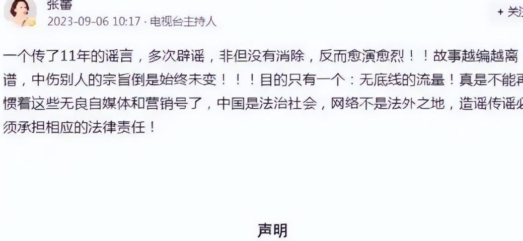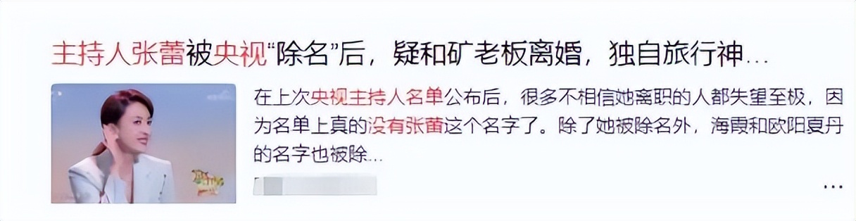 "被央视开除"是其中一条,实际情况是张蕾2023年主动提出离职,去向明确,并非被迫出走。