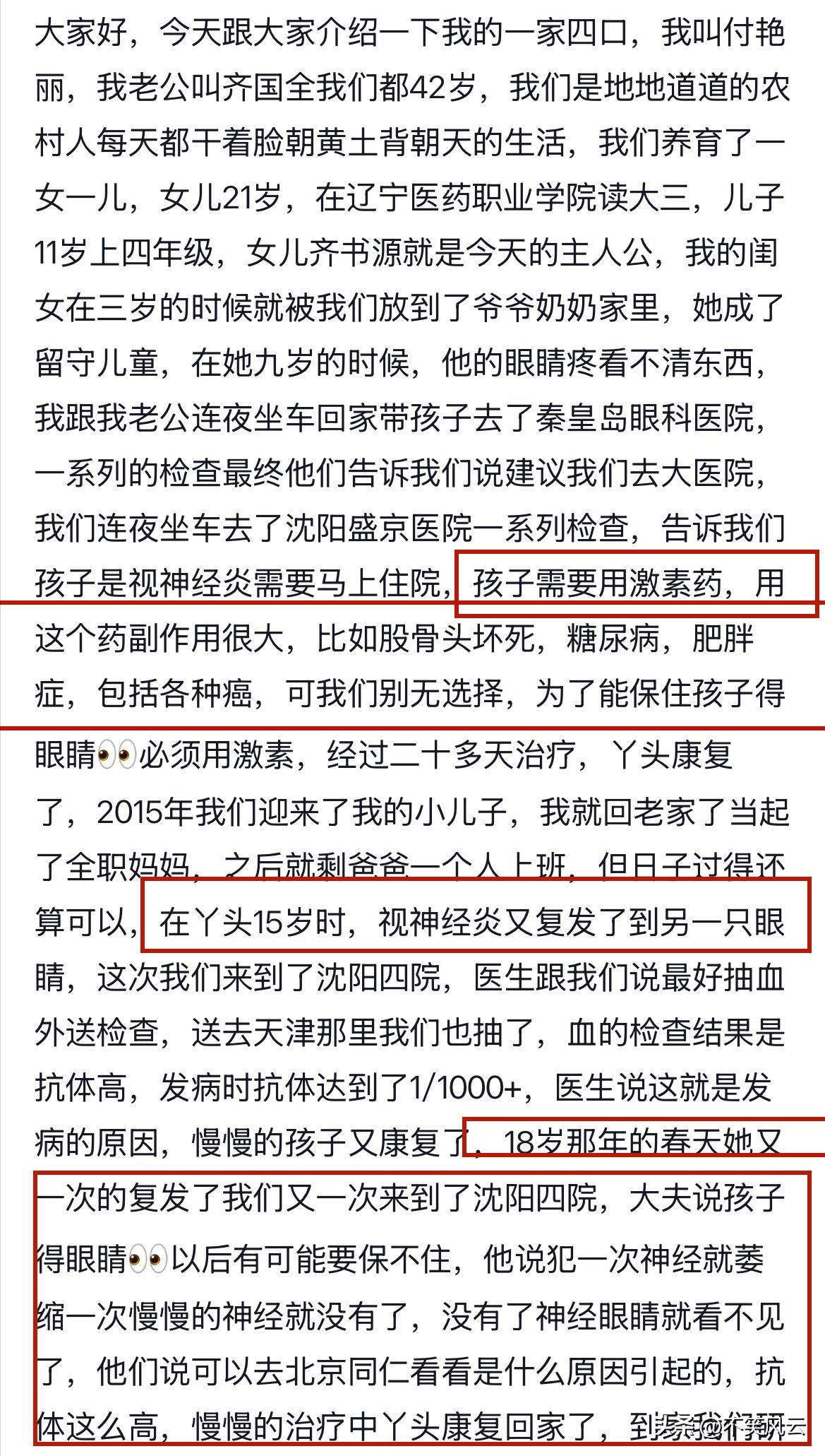 那时候,他们只想着保住女儿的眼睛,根本没有想到,这三次激素治疗,会在12年后,给女儿带来致命的打击。