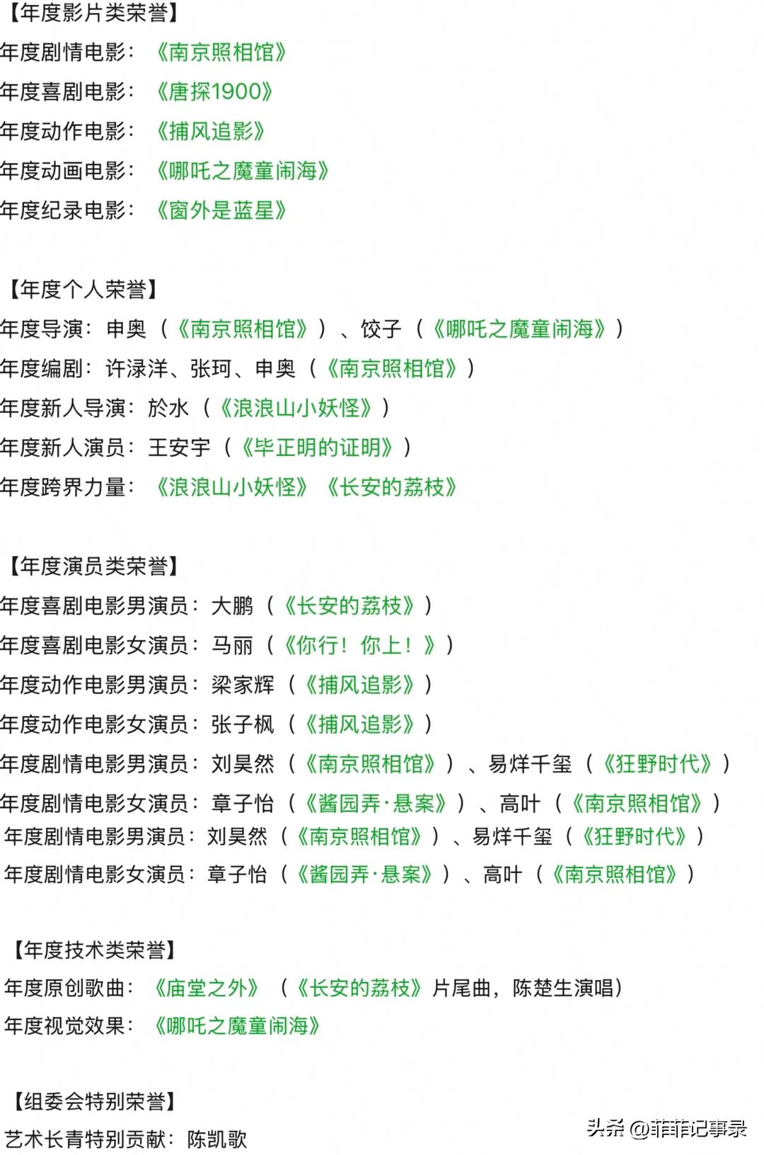当晚获奖名单也新鲜出炉: