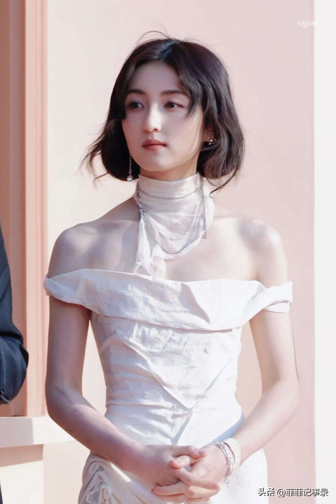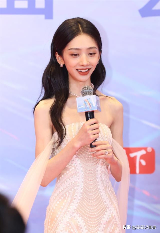张子枫一身白裙包裹小身板,乍一看挺美,但细看瘦得太过,根本经不起久看。
