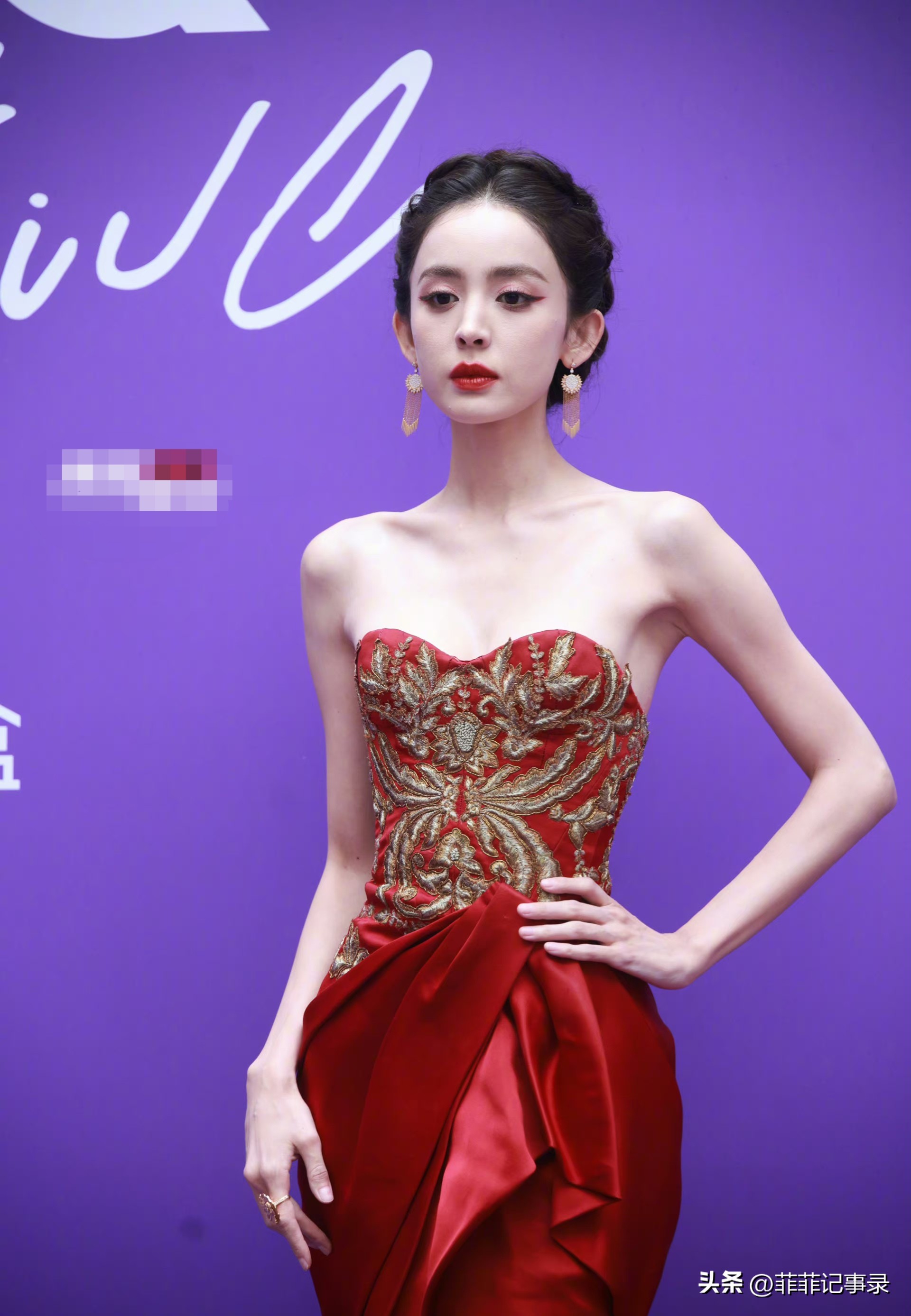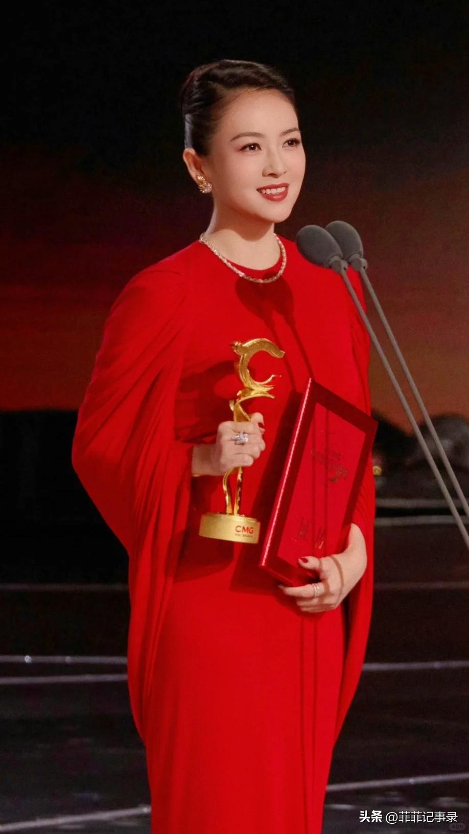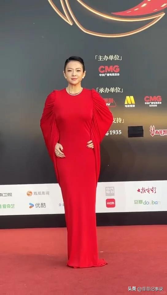 她没有露肩,没有露背,没有深V,一身比红毯还红的红色长裙,从头包到脚,头发利落盘起,就这么简简单单地往那一站,却把所有人的目光都吸了过去。