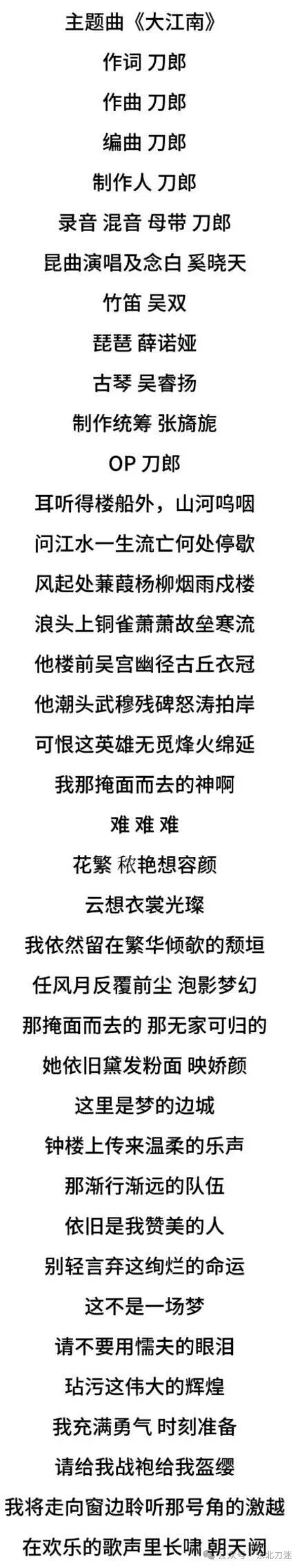 刀哥为东方卫视纪录片《大江南》所写的主题曲