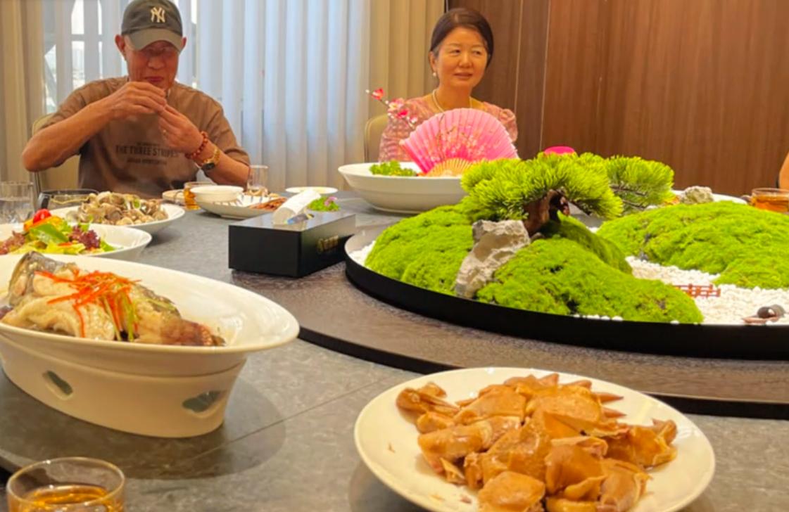 当然,打趣归打趣,平日里没少吃山珍海味的杜志国,回到老家后这些家常菜对于他来说要更可口吧,这不,坐于餐桌前的杜志国右手举着一个包子,动作自然舒展,一看吃得就很开心。