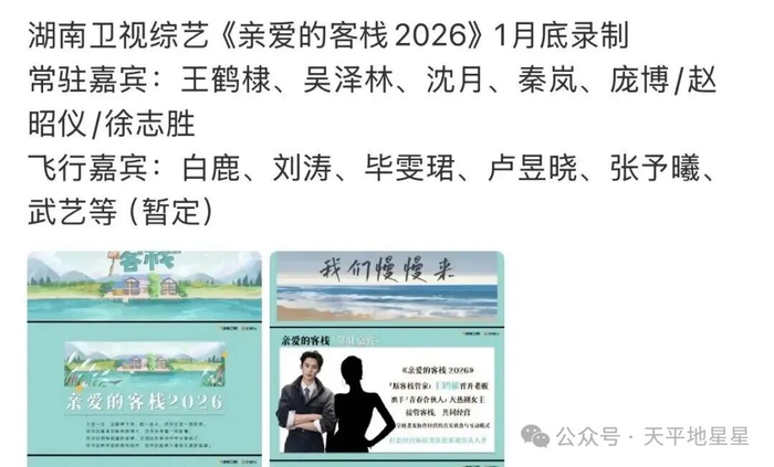 但这并没有打击到芒果搞慢综艺的热情,近日有知情人士透露,芒果计划重启《亲爱的客栈》,并邀请王鹤棣和一位和他的古早CP的女明星常驻,拟邀嘉宾和飞行嘉宾阵容也基本确定。