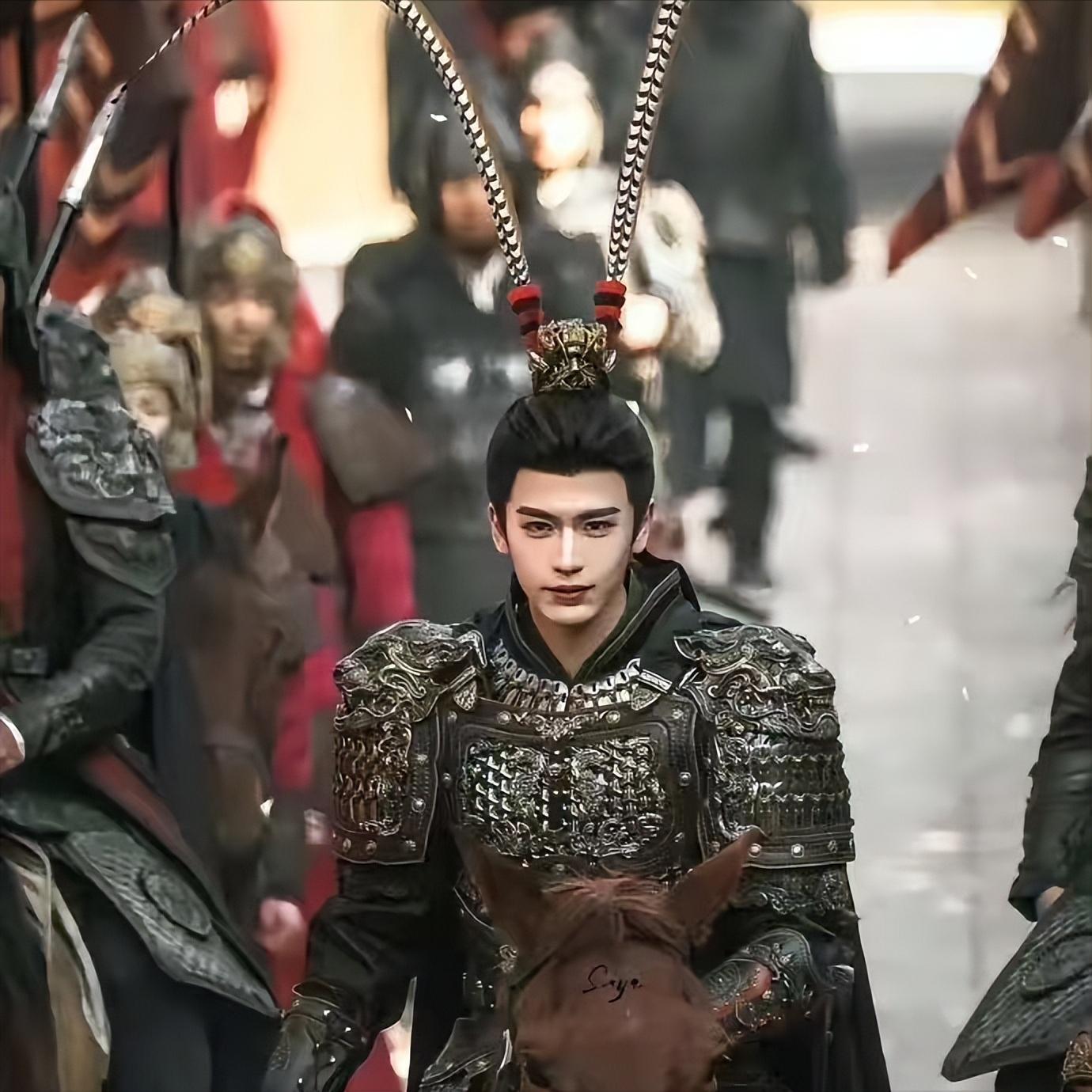 这还不算完,这位“武安侯”骑在马上,头上非得插两根长长的羽毛,造型花哨得像戏台上的武将。