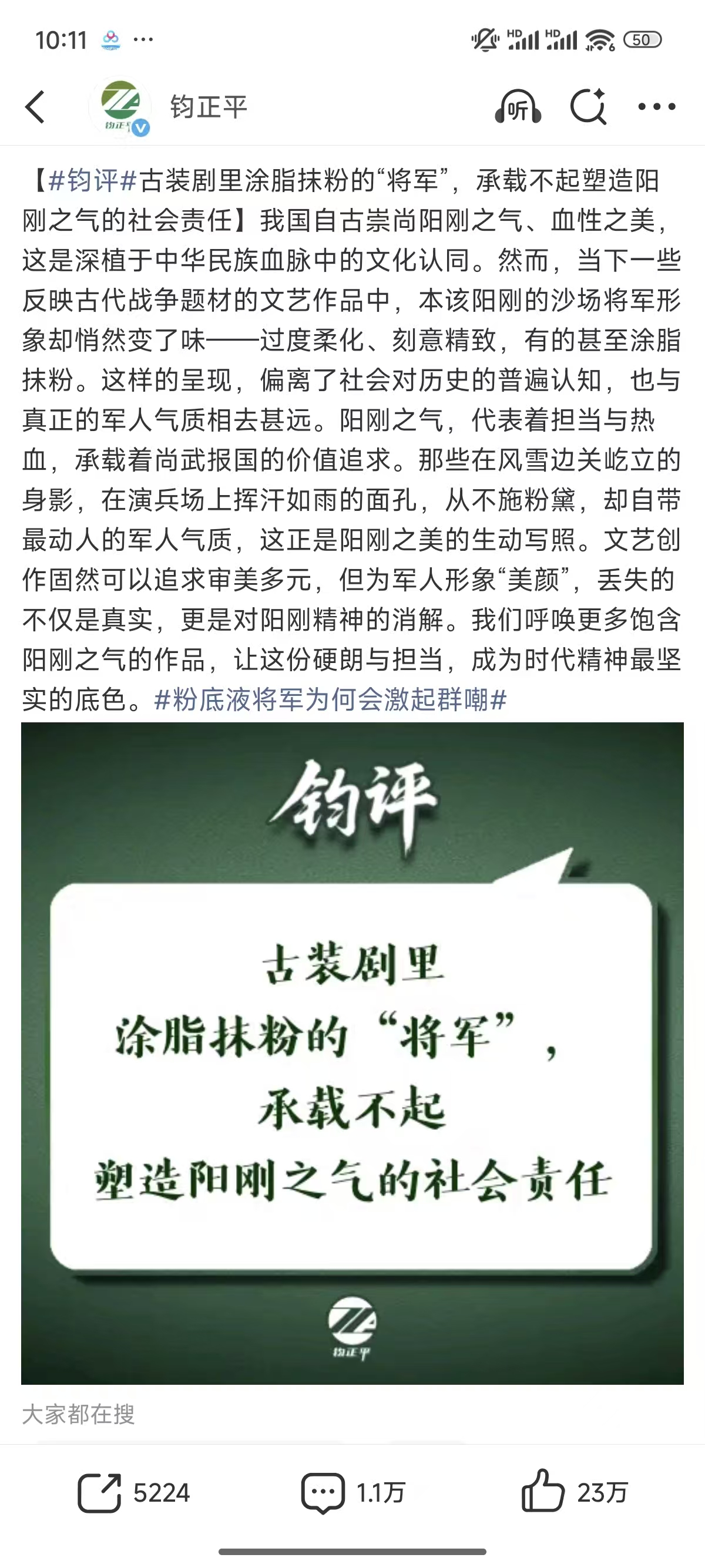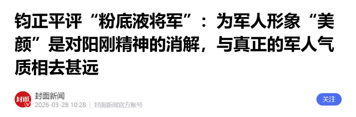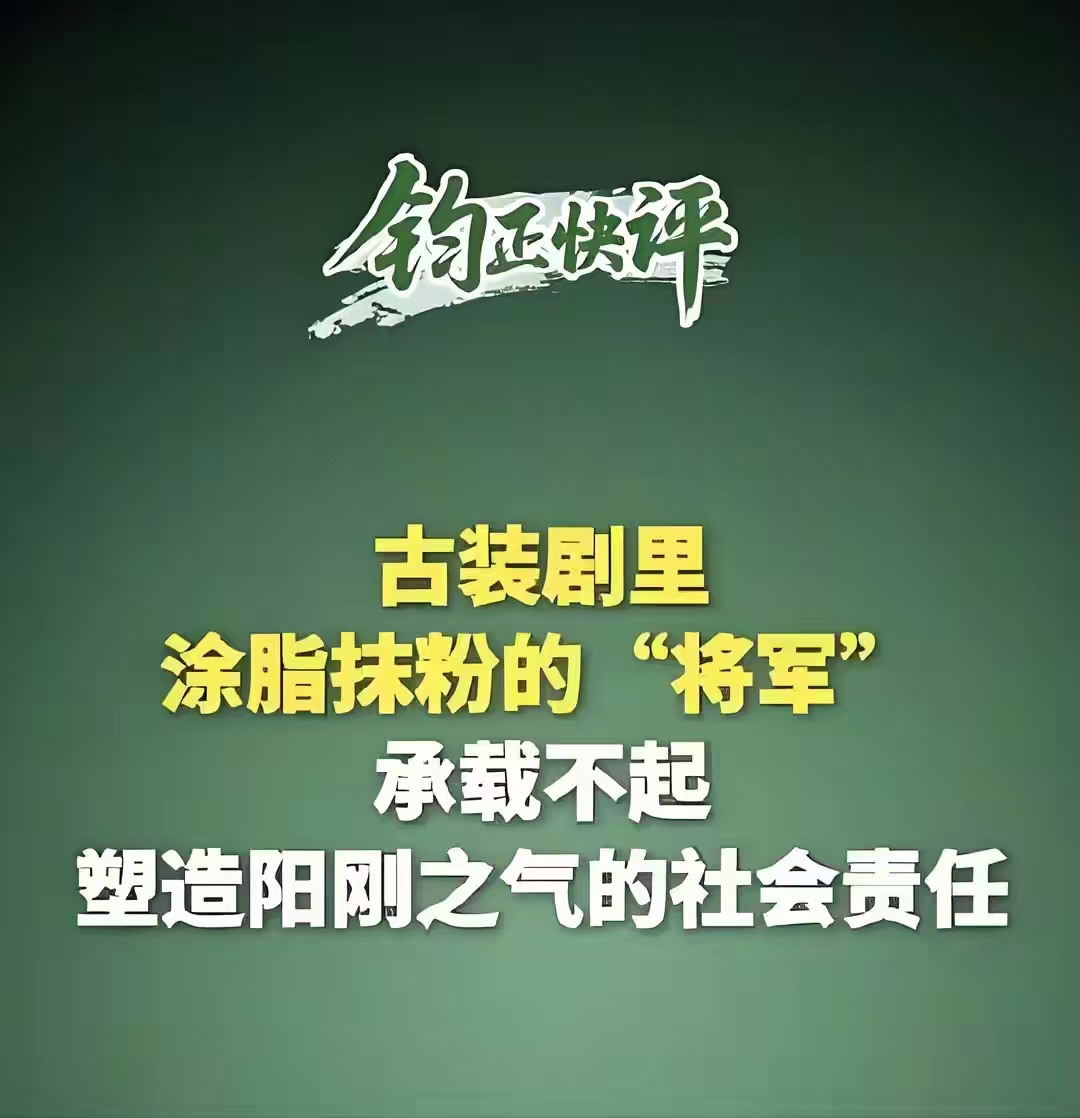 解放军新闻传播中心旗下的“钧正平”工作室,发表了一篇评论,虽然没有直接点名《逐玉》,但“涂脂抹粉的将军”、“过度柔化刻意精致”这些描述,简直是为“武安侯”量身定做。