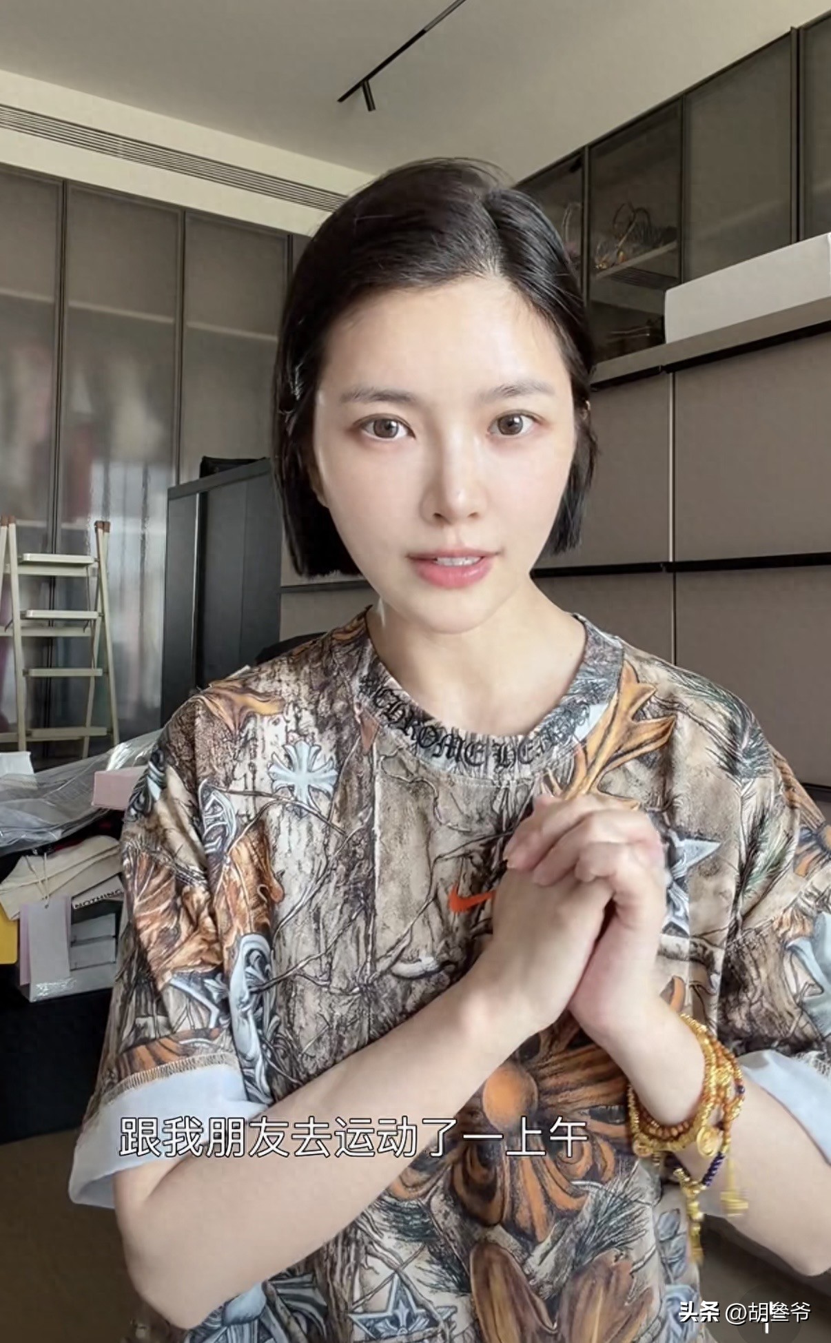 从王灿兮分享的视频看,她近期又剪了清爽短发,整个人看着利落又精神,身上穿件宽松印花T恤,走的是休闲随性的路子。