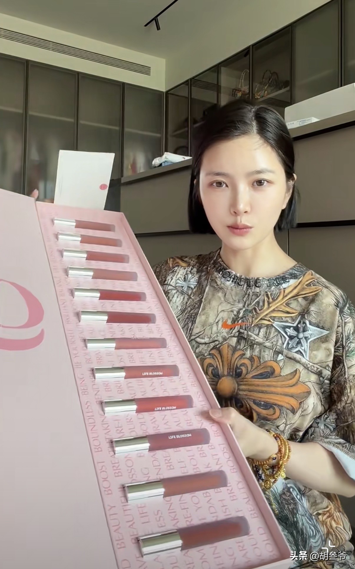 口红这块更是让人羡慕,别人买口红还在纠结色号,她直接拿下一整箱12色口红礼盒,粉色包装少女心拉满,喜欢的颜色全都要,根本不用做选择题。