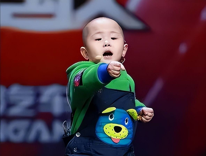 他第一次被全国观众记住的时候,才三岁,个子矮到站在舞台中间像被灯光吞掉了一半,背上还背着一个比他人都高的小音响。