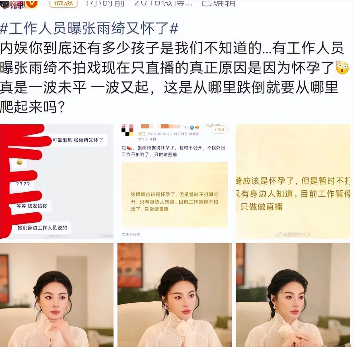 爆料还透露,张雨绮近期停工专注直播,实则是孕期低调休养。