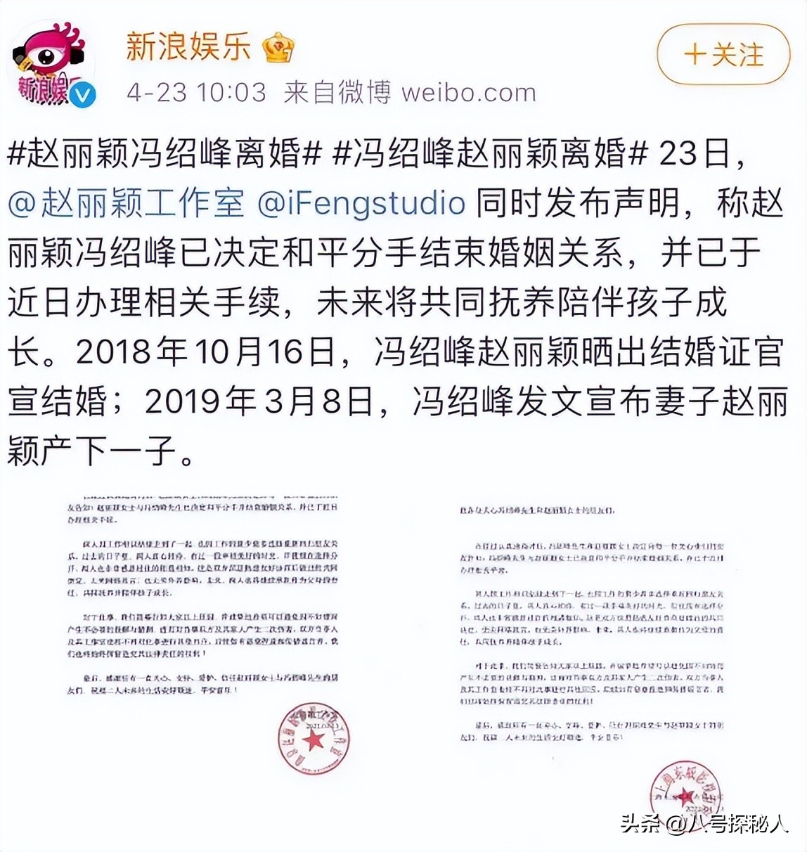 2021年4月双工作室同步官宣离婚,温和落款互不指责,好聚好散画上句点。