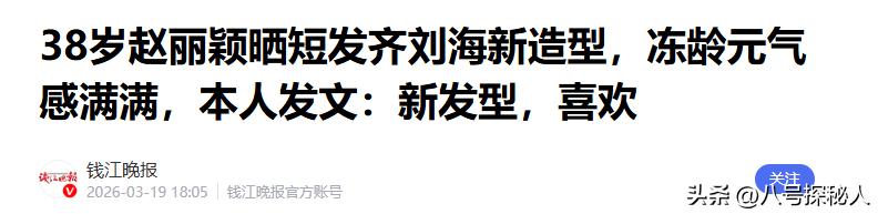 钱江晚报——38岁赵丽颖晒短发齐刘海新造型,冻龄元气感满满,本人发文:新发型,喜欢