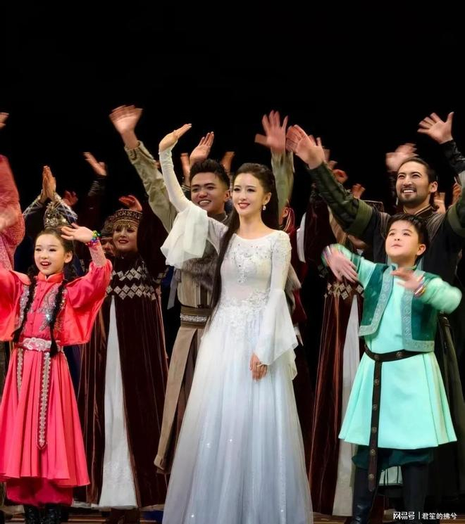 首演现场,42岁的佟丽娅挑战高难度舞段,标志性雄鹰起舞刚柔并济,裙摆翻飞间尽显力量与柔美,谢幕时,她换上皮毛披肩,与身着民族服饰的演员们一同鞠躬,儿子朵朵与董璇女儿小酒窝也登台助阵,三代同台的画面温馨动人。