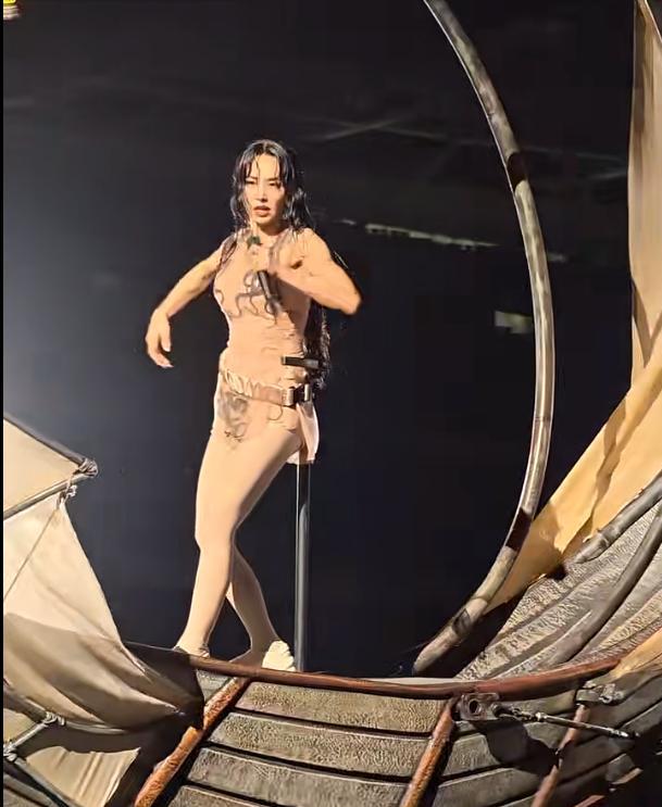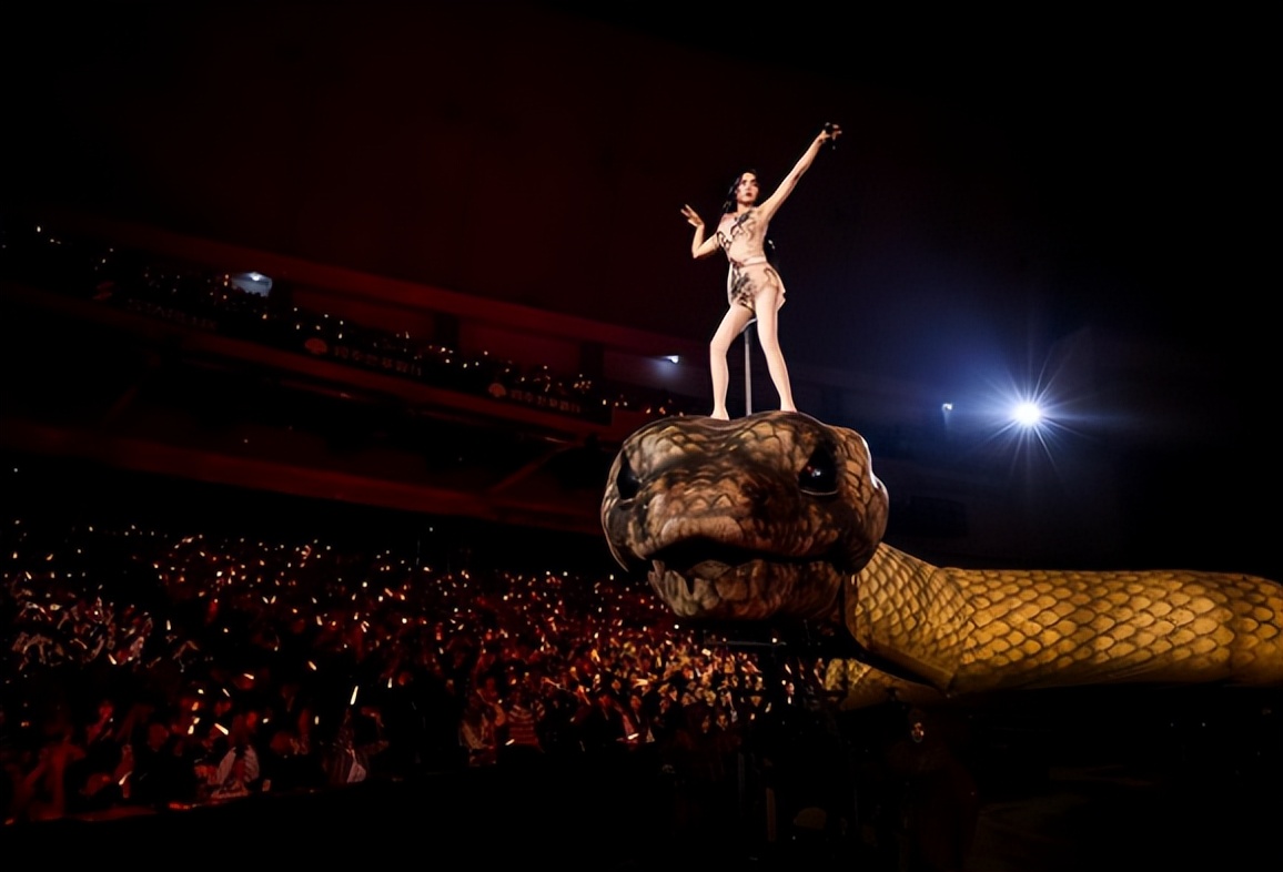 其中那条引发后来全部争议的三十米机械巨蛇,是整个开场章节的核心装置,蔡依林踩在蛇背上绕场演唱《美杜莎》,全开麦,无失误。