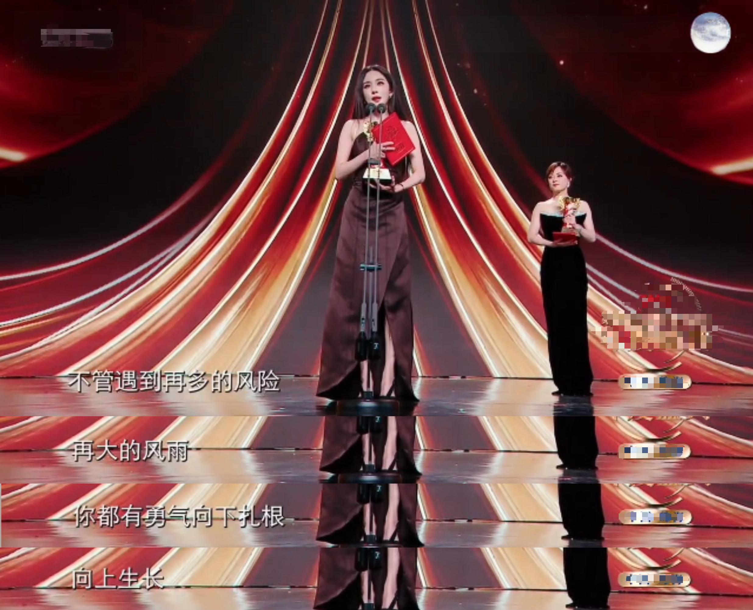 领奖台上,杨幂的获奖感言中,有对宁绣绣说的一句话: