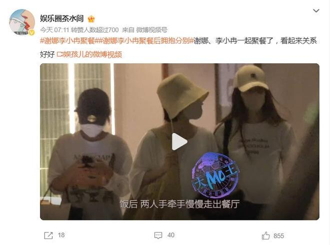 7月22日,谢娜和李小冉被拍到在北京某餐厅聚餐数小时,离开时不仅手牵手十指紧扣,分别前还来了个紧紧拥抱,亲密程度直接拉满。网友近距离偶遇后爆料:“隔老远都能听见谢娜标志性笑声”,而李小冉全程温柔配合,两人一静一动,氛围轻松自然。更吸睛的是她们的穿搭——黑白配衣服、帽子加帆布包,被调侃“闺蜜装出街,连造型师都省了”。