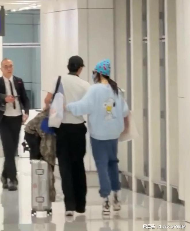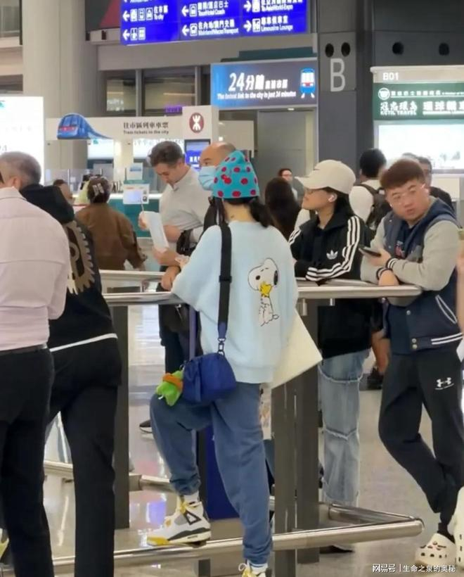 3月26日,在香港国际机场被网友拍到了温馨的画面。